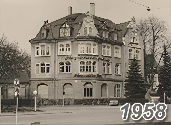 Das Geschäftsgebäude über die Jahre hinweg.