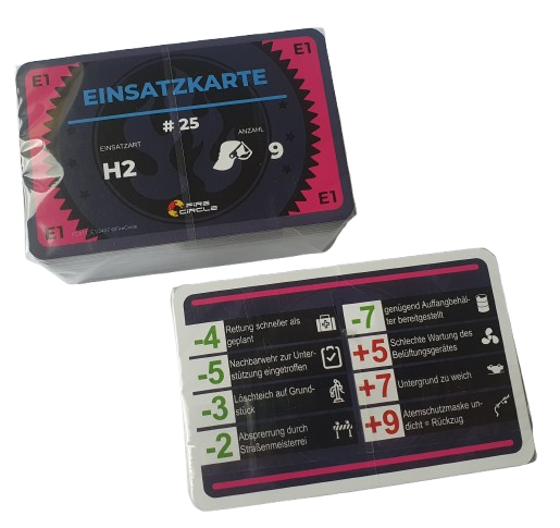 - Einsatzkarten (je 24 rote / grüne / orange / blaue)