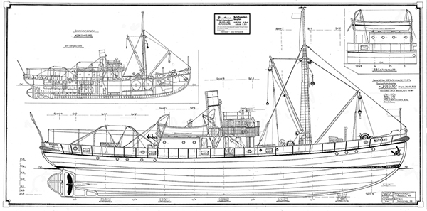 Durch zahlreiche Umbauten hat sich das Schiff in über 100 Jahren deutlich gewandelt. Deshalb gibt es einen zweiten Plan der Bussard im aktuellen Zustand (2019). Der Plan ist ebenfalls in unserem Webshop erhältlich.